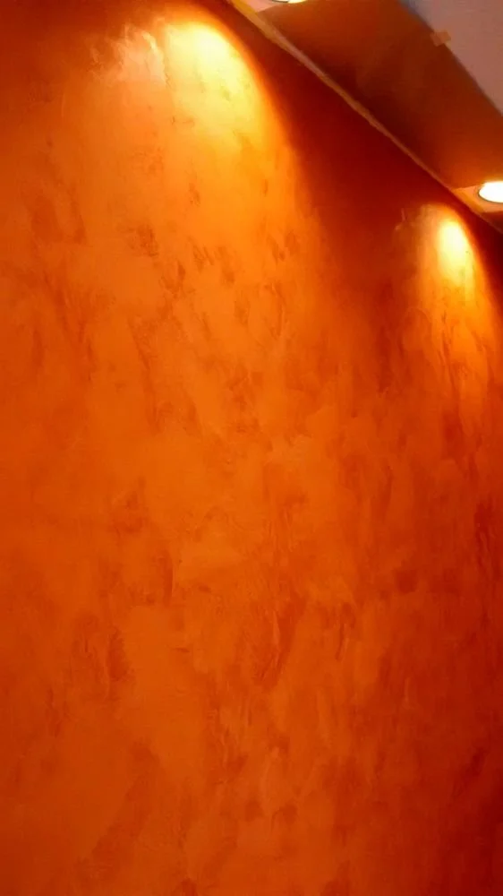 Firey red wall finished with a traditional Venetian plaster look in Nokomis FL