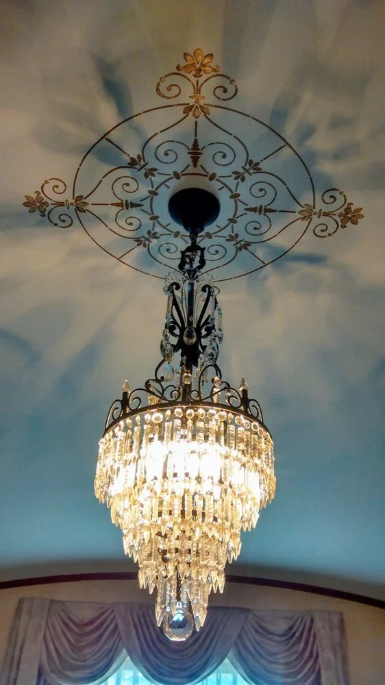 Venetian plaster stencil on chandelier' medallion in Sarasota FL
