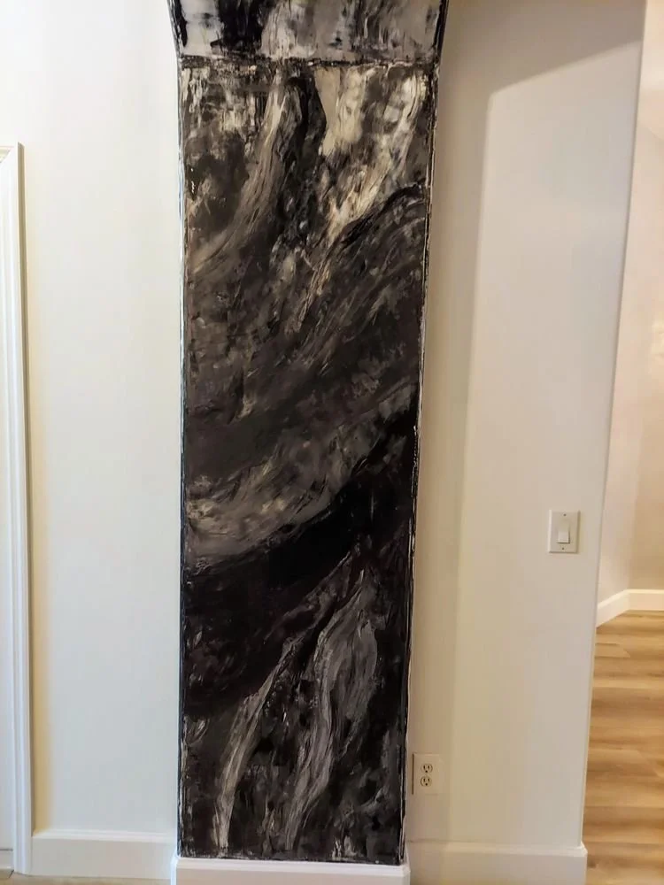 A soft translucent white Venetian plaster finish on a fireplace in Osprey FL
